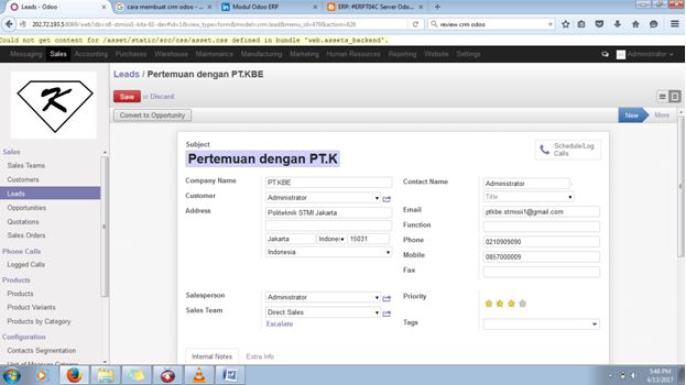 Pada kesempatan UTS mata kuliah Sistem Informasi Industri ini, saya akan meng-upload tentang modul CRM yang telah saya buat dengan Odoo dalam beberapa waktu lalu. untuk informasi selengkapnya, silahkan klik baca selengkapnya dibawah ini :