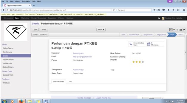 Setelah sudah, kita ke opportunities untuk peluang untuk menjadikan calon customer tersebut membeli barang kita