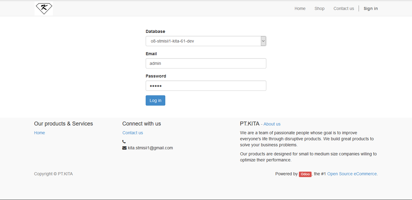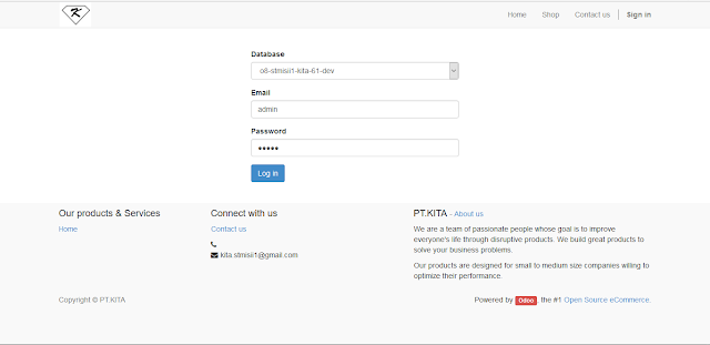 lalu masuk ke menu odoo untuk pt.kita dengan tampilan sbb :