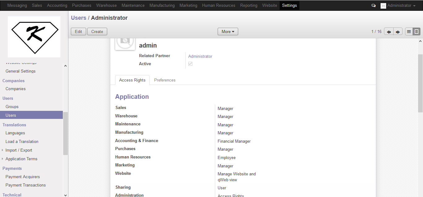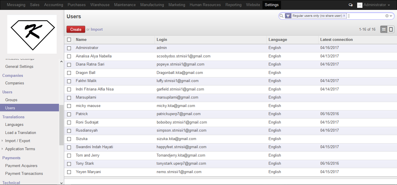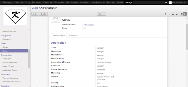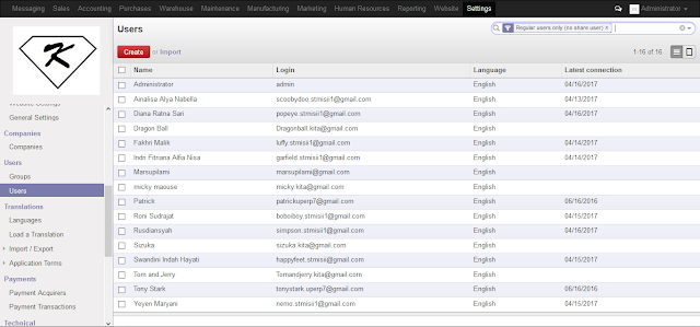 Sebelumnya saya akan menjelaskan tentang PT.KITA, PT. KITA merupakan perusahaan yang bergerak dalam bidang perdagangan. Antara lain: jasa pengadaan komputer, laptop dan PC. di dalam PT KITA terdapat Administrator yang bertugas membuat komputer di dalam menjalankan roda kegiatan Administrator PT KITA menggunakan odoo, berikut saya akan mejelaskan bagaimana cara Administrator PT KITA menjalankan kegiatannya.