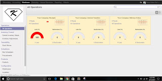 Pada Odoo-modul warehouse ini terdapat segala aktivitas yang berlangsung di warehouse,seperti lokasi warehouse, product yang terdapat di warehouse, operasi yang terjadi, pengelolaan, dll. Berikut saya lampirkan beberapa tampilan mengenai Odoo-Modul Warehouse :